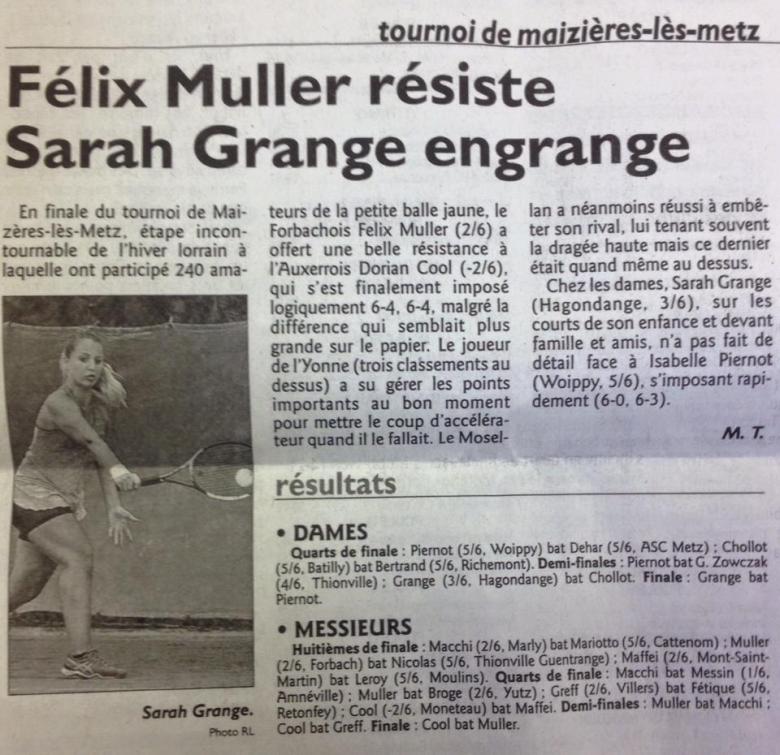 Bravo à notre entraîneur Dorian qui a gagné le tournoi de Maizières les Metz en battant en finale Felix Mueller (2/6) en deux sets 6-4 6-4.
